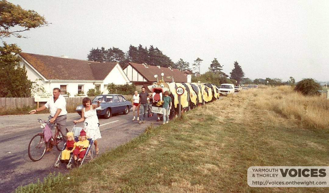 The families of Hill Place Lane, Thorley, worked together from late 1970s to enter Yarmouth Carnival. An early entry, children as ‘Knotty Ash Folk’
