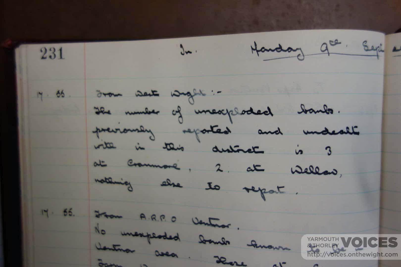 ‘Yarmouth Police state that the red flag placed near the unexploded bomb in Newport recently, and which was removed to Shorwell Down, has not yet been returned to them. They would like information which would enable them to obtain the return of this flag.’