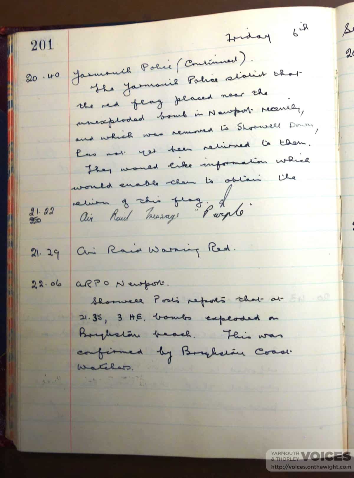 ARP Log : Unexploded bombs at Lucketts Cliff 1200 yards north of Yarmouth – Newport Road.