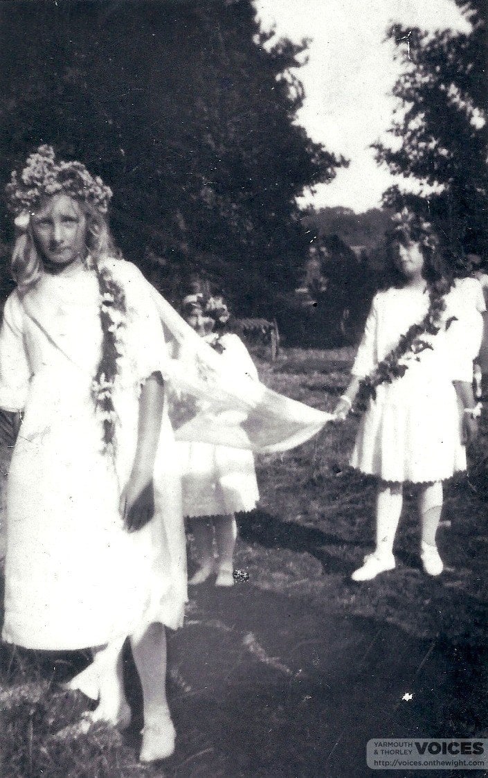 Victorian invalid carriage loaned by Dashwood family, of The Mount, in Doe family Carnival entry 1950s. Maybe Raich Doe on right.