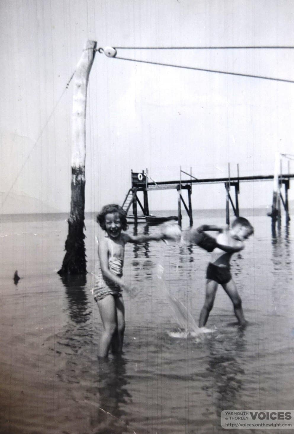 Yarmouth School Swimming Medal awarded to Eileen Smith nee Lansdowne in 1932 for swimming one mile from Eastmore to Yarmouth Pier. Eileen was 11 when she swam the mile and received the medal. Each year scholars at the school such as Joan Cokes nee Cooper, Geraldine Sheldon nee Haward,Florrie Sloper nee Knee, were awarded a medal for swimming a mile in open sea.They would sometimes see dolphins and porpoises in the Solent.