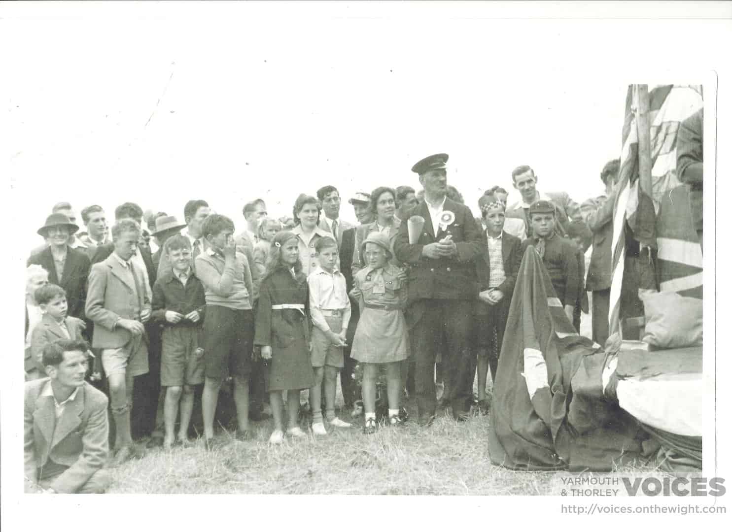 Guide and Brownie Pantomime at the ‘Con Club’ written and directed by Mrs Hans Hamilton, front with Sam McDonald, musical director, who played the drums.